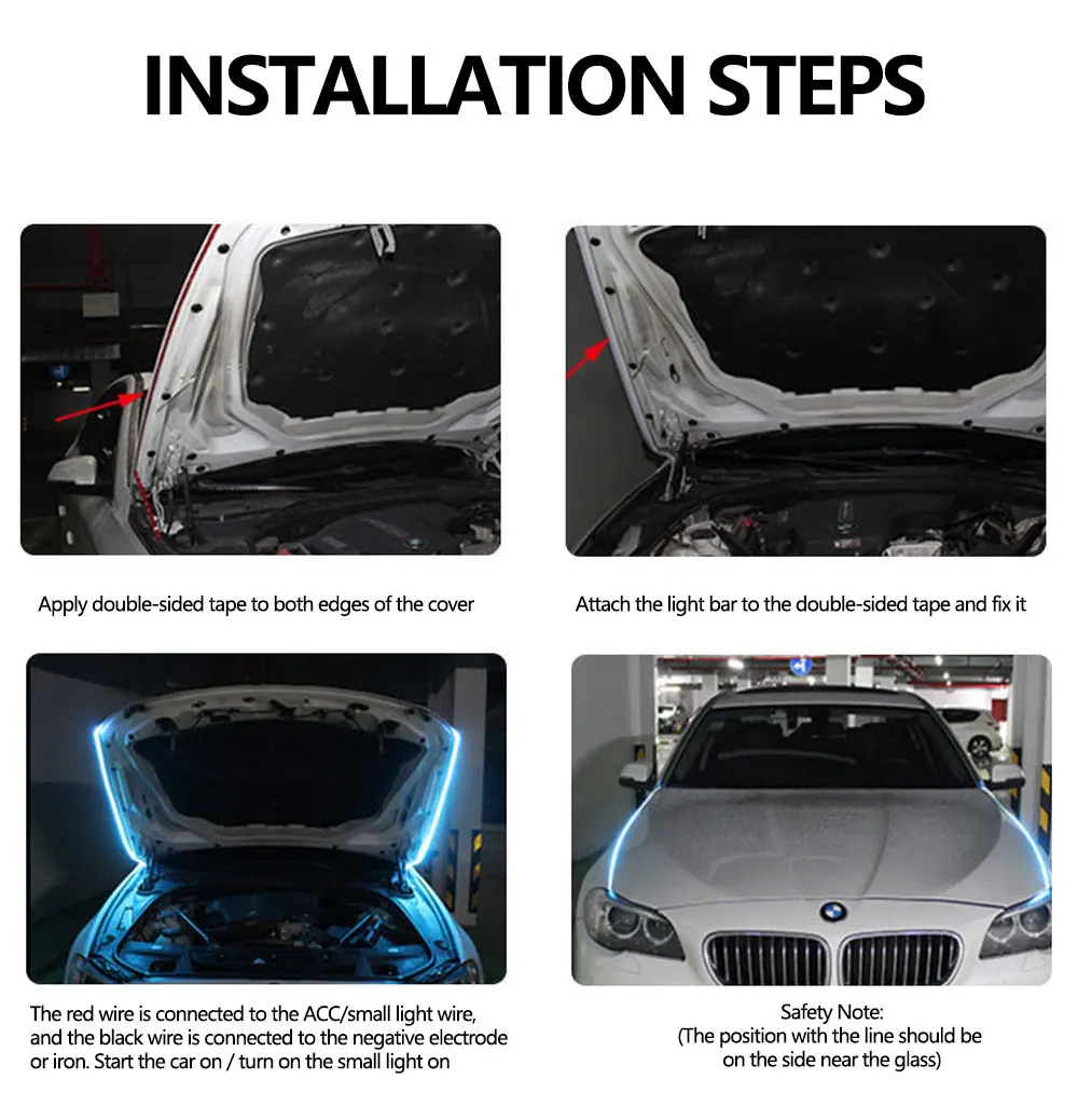 1.2M/1.5M/1.8M Car DRL Led Lights Strip For Hood Flexible Car Engine Cover Decoration Headlight Universal Daytime Running Lights